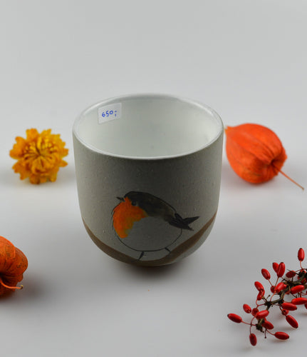• Cínový smaltovaný hrnek - Venkovské ptactvo