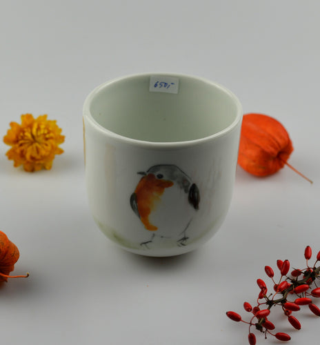 • Pohárek na espresso s motivem ptáků - hnědá slepice